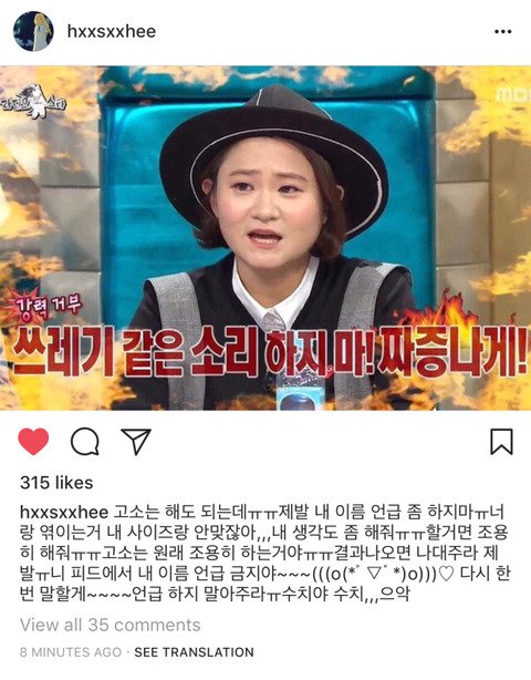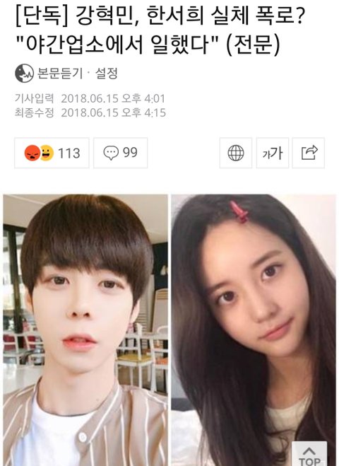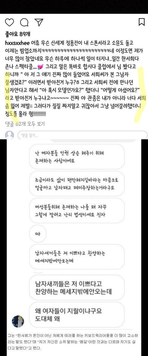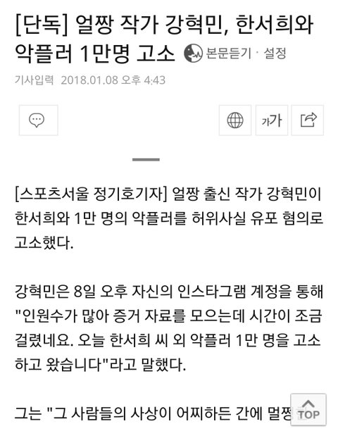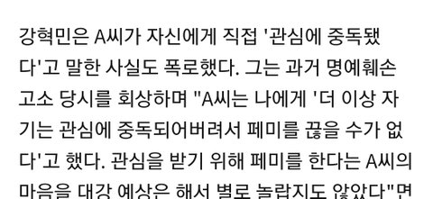 강혁민과 한서희 관계 모르는사람 많을거같아서 추가하자면 강혁민과 한서희는 명예훼손 혐의를 두고 법적 공방중임