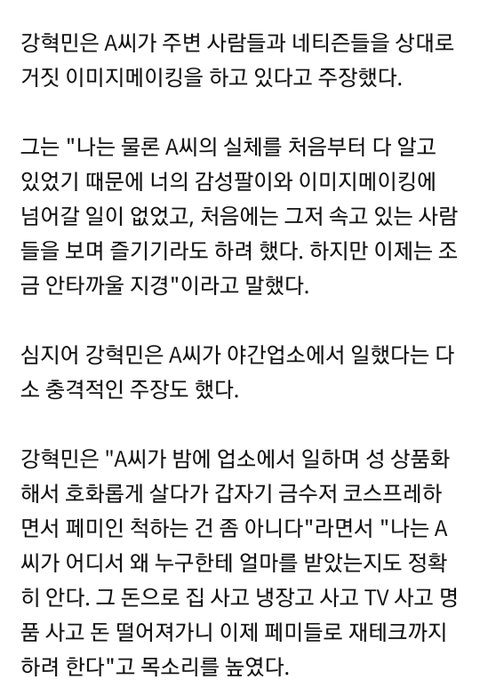 강혁민이 페미인척 하면서 페미들 돈을 뜯어먹는다 위선적이다 라는 말을하는게 위 이유들 때문인듯