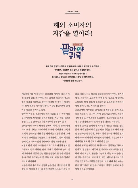 채널A. 7, 8월 촬영이고 9월 방송이래