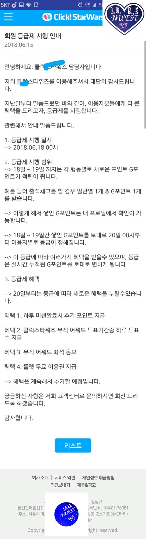 클릭별(스타) 워즈 공짜별(~1:45) 등급제시행 안내문