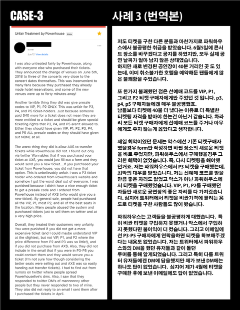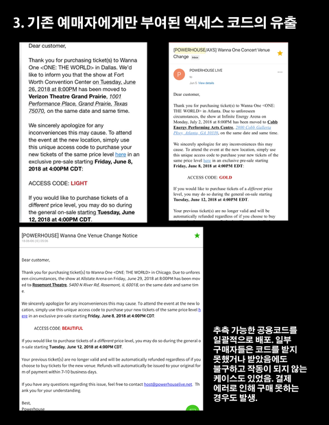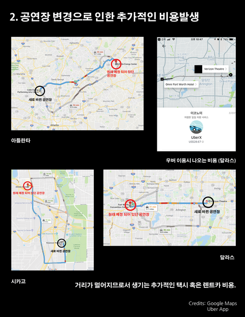 2. 공연장바뀌어서 팬들의 금전적 손실이 막대함