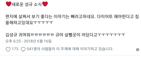 살쪄서 보기좋다는 말 쓰면 안됨 성규가 시무룩해 함ㅋㅋㅋㅋㅋㅋㅋㅋㅋㅋㅋㅋㅋㅋㅋㅋㅋㅋㅋㅋ