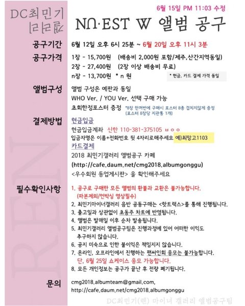 < 뉴이스트 갤러리 앨범 공구 안내 >