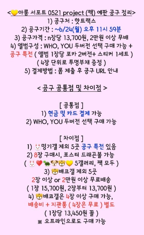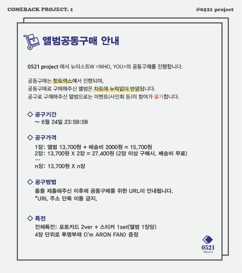 < 아롱 서포트 0521 project (짹) 앨범 공구 안내 >