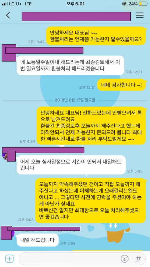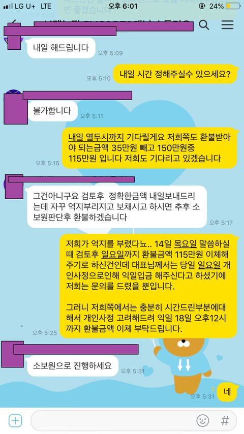허나 당일날 대표도 아니고 직원한테 연락이옴