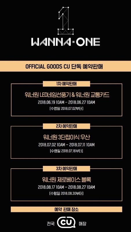 Wanna One OFFICIAL GOODS CU 단독 예약판매 안내