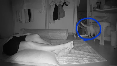 불끄고 집사 잘려고 누우면 도칠이는 혼자 이리저리 돌아다님.