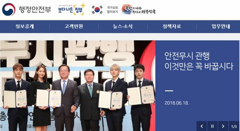 행안부 홈페이지에 백현이