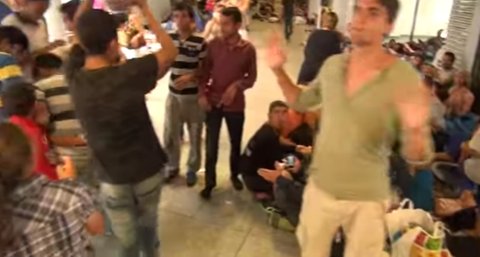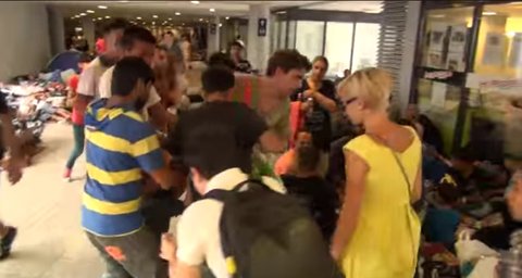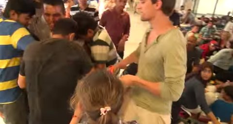 난민 여성에게 무언가를 나눔하고 있다가 난민 남성들에게 둘러싸여 강제 가방스틸을 당하고 있는 어느 한 외국 봉사자의 모습..
