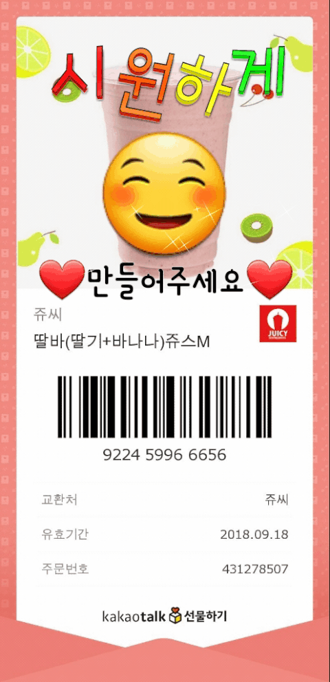 어제 꼬야가 나눔해준 꼬프티콘 사용했꼬☺☝️