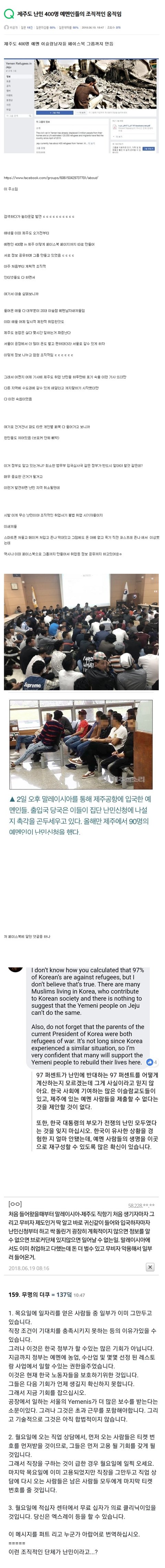 예멘 무슬람들이 조직적으로 페북까지 만들어서 한국 들어와 전국에 퍼져서 일하려고 하는 움직임이 있음