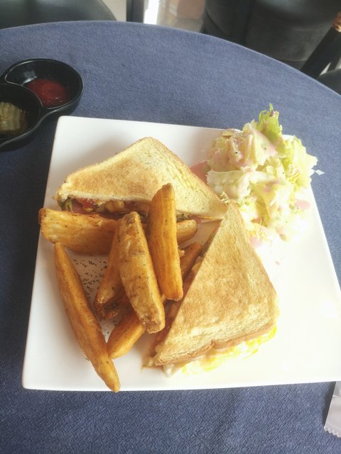 사진 보시다시피 감자튀김, 속의 알찬 구성 등등 누가 봐도 그냥 브런치카페에서 흔히 볼 수 있는 비주얼이지요.