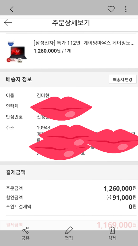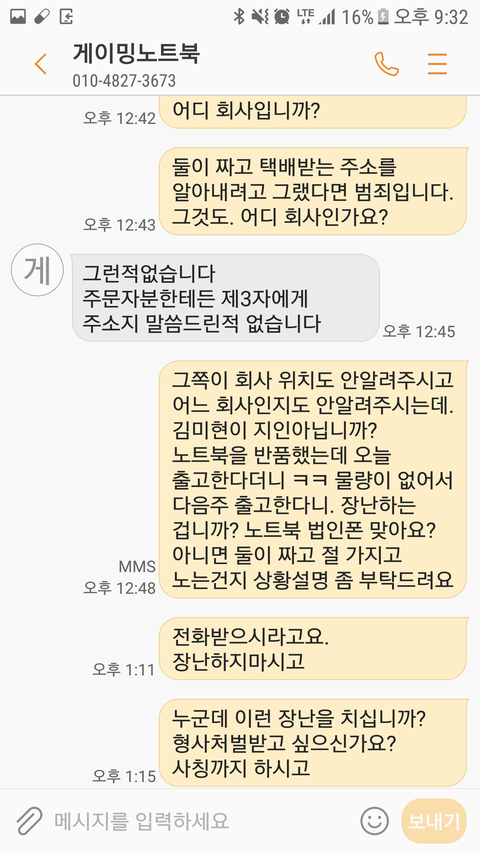 있다고 해서 좀 무서워서 집주소를 알려주지 않았거든요. 계속 집주소 물어보길래 알려주지 않고 헤어지자고 했어요. 근데 헤어지지말잠ᆢㄱ 노트북을 선물해준다면서 주문을 했다는데. 워메프라는 곳에서 했대요.