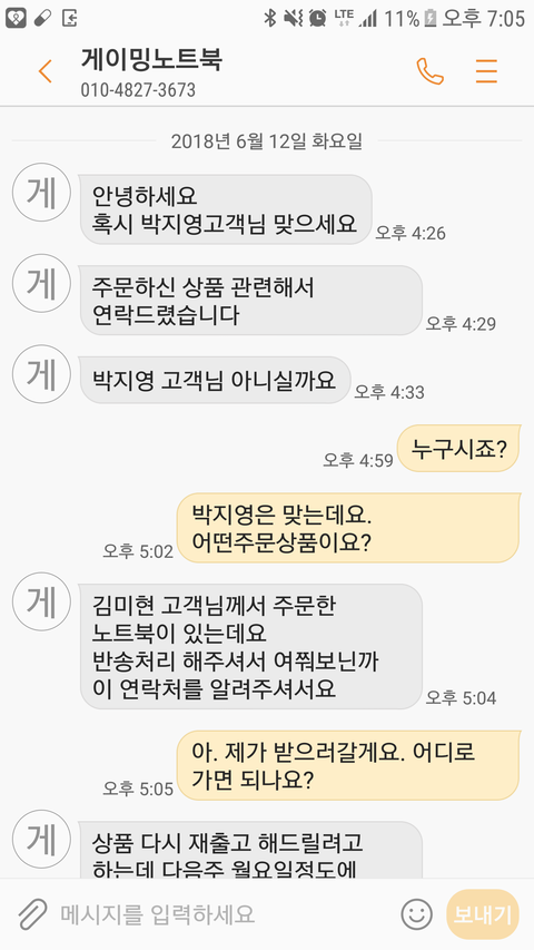 그래서 그런지 이상한 번호로 문자가 오더군요.