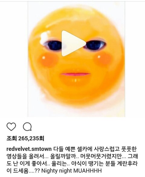 저런건 어디서 구해오는건지 야식으로 계란후라이 추천하며 웬디 본인이 계란후라이로 변신한걸 올리는데