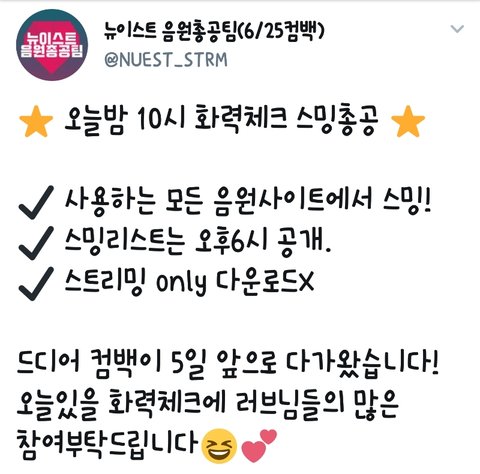 ♥️스밍리스트♥️ - 10시부터 하기 ☝️ 미리스밍하기 없기✋