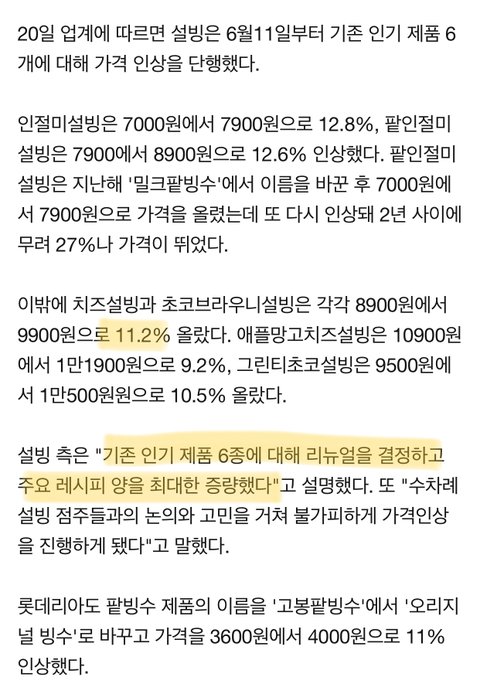 기사내용을 봐서는 가격올린대신 빙수 증량한다는거같은데 아무리봐도 증량한 것 같진 않은데...