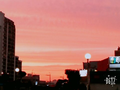 내가 사진을 개떡같이 찍어서 그런데 하늘 진짜 핑크빛 도는 다홍색이야ㅠㅠㅠㅠㅠㅠ 진짜 정말 너무 예쁘다...