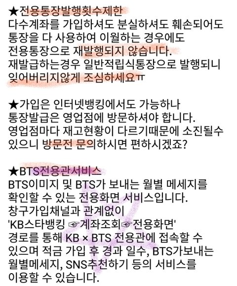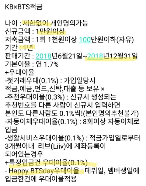 + 멤버 생일 데뷔일에 우대이율 적용되고 BTS전용관 서비스도 제공한대ㅎㅎ