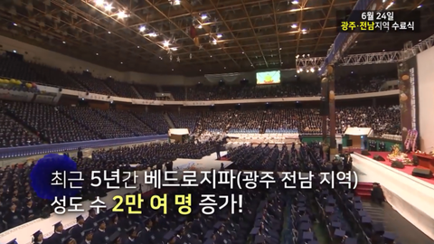 2018년 6월 24일에는 무려 3100명이 되는 수료생이 수료를 할 예정인데요.올해 11월엔 1000명의 수료식이 한번 더 있을 예정이라고 합니다.2018년 한 해만 신천지 베드로지파에 입교한 수만 4000명이 넘는다고 하는데요.