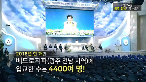 2018년 6월 24일에는 무려 3100명이 되는 수료생이 수료를 할 예정인데요.올해 11월엔 1000명의 수료식이 한번 더 있을 예정이라고 합니다.2018년 한 해만 신천지 베드로지파에 입교한 수만 4000명이 넘는다고 하는데요.