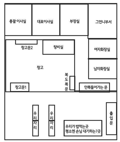 안쪽 들어가는 문으로 나오면 우리가 뭐 먹어도 책상에 내려두면 안보이니까 괜찮을꺼다라고