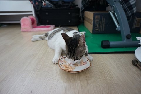 새끼고양이가 미소 젖을 먹고있을때 조금씩 같이 주려했는데