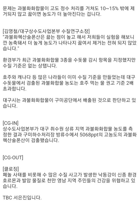 대구 수돗물 발암물질 검출됐데요ㅠㅠ