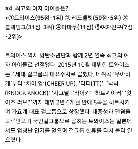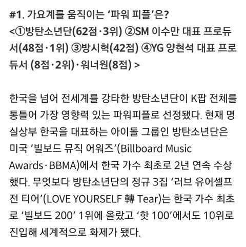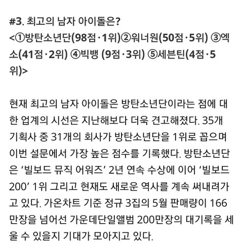 35개의 이사급 이상 각 엔터 대표들이 뽑은건데 왜 의미가 없음? 고작 몇천명 대상으로 어떻게 하는지 모를 허접한 대중 설문조사보다 믿을만 하구만ㅋㅋ