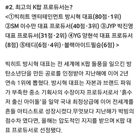 각 소속사 대표들이 뽑은 남녀 아이돌및 프로듀서