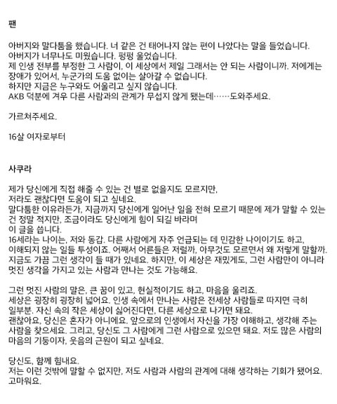 팬의 고민을 진심으로 같이 고민해주는 사쿠라 ㅠㅠㅠ