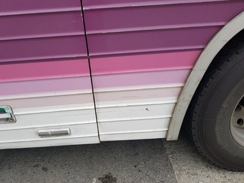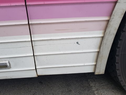 버스의 피해부위는 수화물 마지막 문과 뒷바퀴 사이입니다. 스크래치정도이구요. 함몰 없습니다.