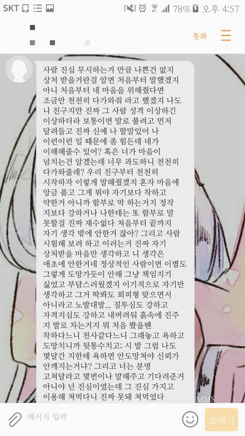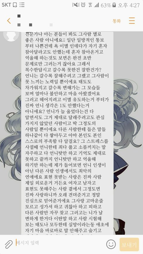 많이들 이별할때 예의를 카톡에서 따지는데 이별하면 그냥 남이에요... 잠수안타고 이별을 전하는것만으로도 할도리는 다한거에요