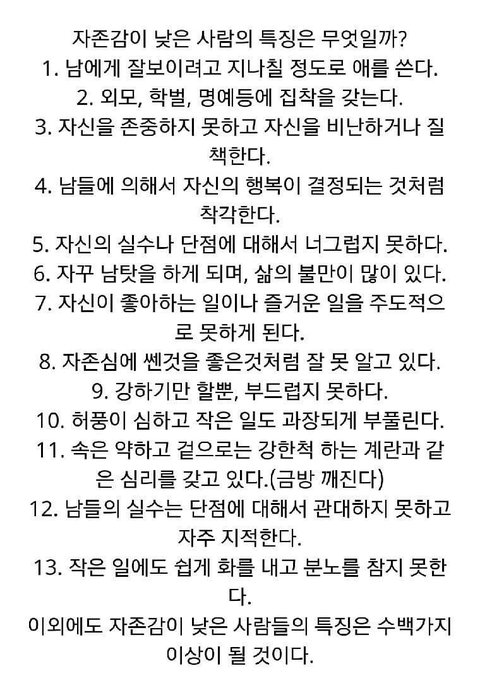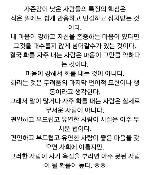 왜 그렇게 성격이 못돼 먹었나 했더니 자존감 낮아서 군요