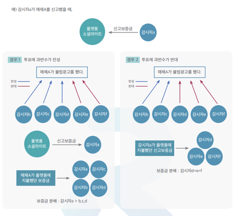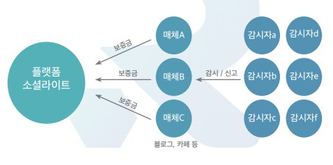 광고주는 쇼셜 미디어에 광고를 개제할 경우 일정량의 보증금을 걸어두게됩니다 이보증금은 광고주가 게시한 글의 허위,악의적 게시글이 아닐 경우 전액을 반환받을수 있으며 만약 해당 게시글이 악의성을 지니고 있다 판단되면 유저는 해당 게시글을 신고 할수 있습니다.신고가 접수된 게시글은 이용자끼리 서로 투표를 통해 진위가 결정됩니다