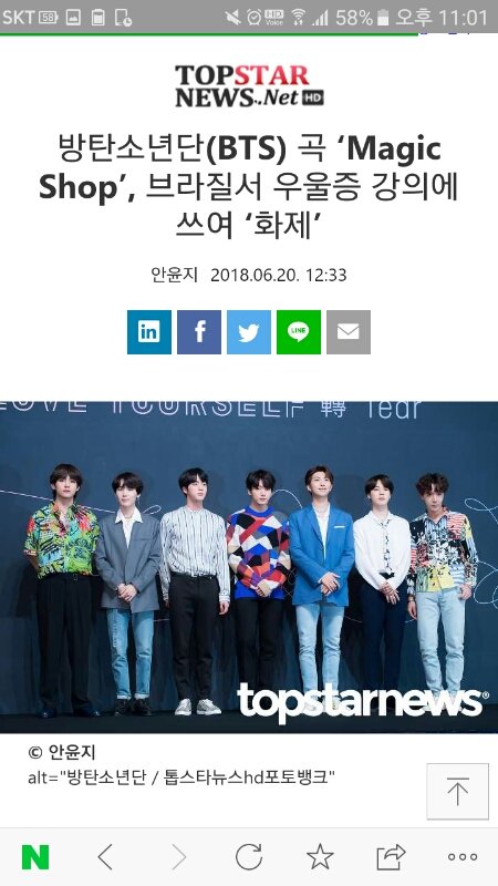 방탄소년단의 ‘Magic Shop’ 가사가 브라질 한 학교의 우울증 강의에 쓰여 화제다.