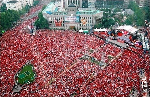 자동차 경적으로 대~한민국 울리면 길가는 사람들 다 같이 짝짝짝짝짝 박수쳤다던데