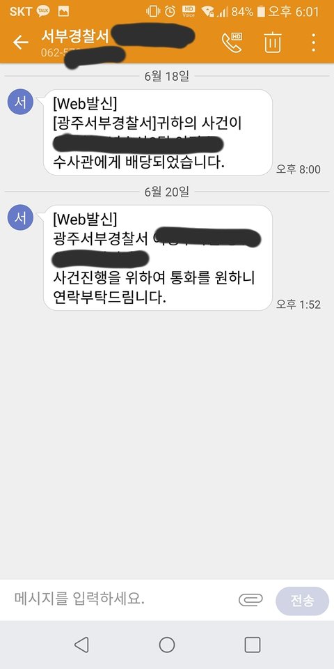 6월 21일 17:57 담당 수사관에게 연락이 와 L마트 상무점에 공문을 보내 CCTV 확인을 했다고 합니다.)
