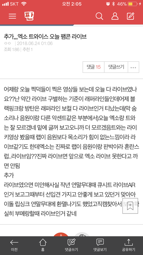애들 작년 연말 무대 라이브 한 게 태반인데 지 혼자 선입견 갖고 애들 오늘 무대 분석 하고 아닌 거 깨닫고 추가글 써놓은 거 개싫어 ㅅㅂ