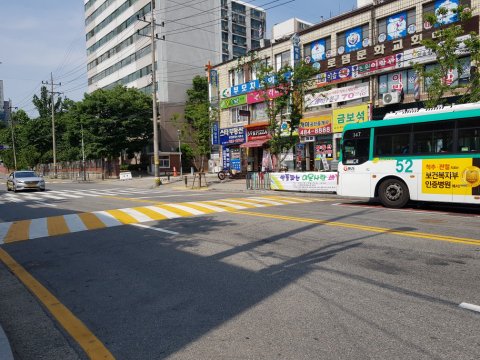 일차선에서 바로 아파트 입구쪽으로 우회전하는 시점에
