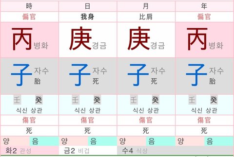 4개의 기둥(년월일시) 에 8글자가 뜨는거라 사주팔자라고부르는거야. 뭐, 나는 역학을 아직 야매? 로 좀 공부하고있는 중이라 더 자세히는 설명 안할게.