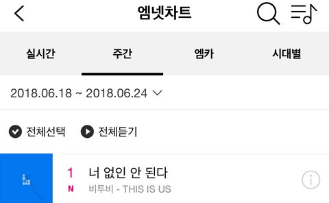 우리 전통적으로 약했던 차트에서 주간 1위라니 ㅠㅠㅠ