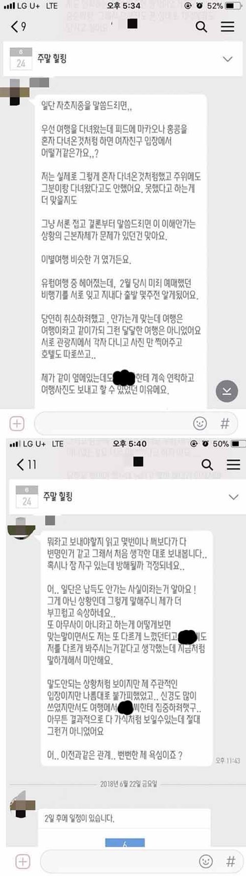 여자가 생겼으면 뭐하러 그렇게 정성스러운 장문의 카톡을 보내고