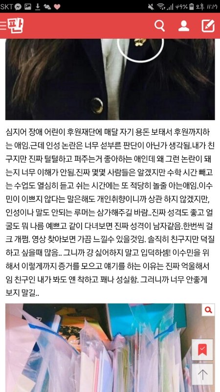 분명 이수민 실친이쓴글에는 착하다그러는대 무ㅜㄴ지모르겠으