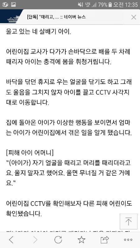 아동학대는 더 심해지면 심해졌지 없어지질않네요 버젖이 피해아동의 눈물은 무시하고 오히려 더 배째라 어린이집 유치원 운영하며 사리사욕만 챙기려는 악마들을