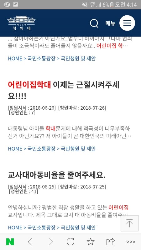 청와대 게시판에 가셔서 어린이집 학대근절을