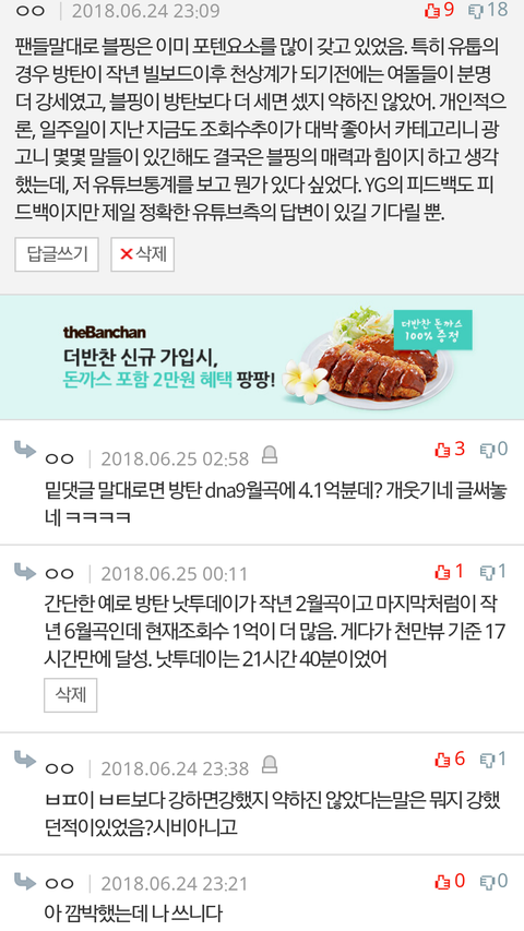 블핑 뮤비의 높은 조회수에 대한 근거를 나름대로 썼다가 도리어 반대먹음