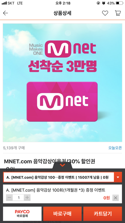 http://m.ticketmonster.co.kr/deal/detailDaily/1247024054?cat= 엔넷 100회 스밍권!!!!! 빵원!!!
