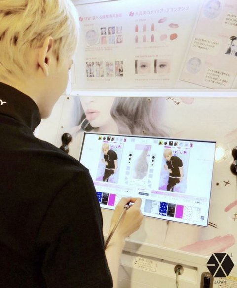 스티커 사진 꾸미는 백현이