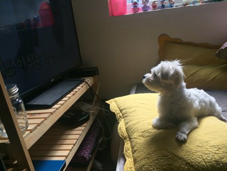 모닝 햇살을 받으며 티비 시청 중